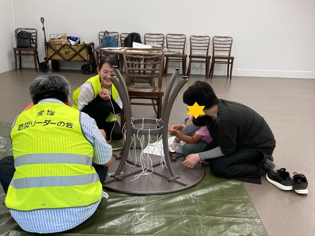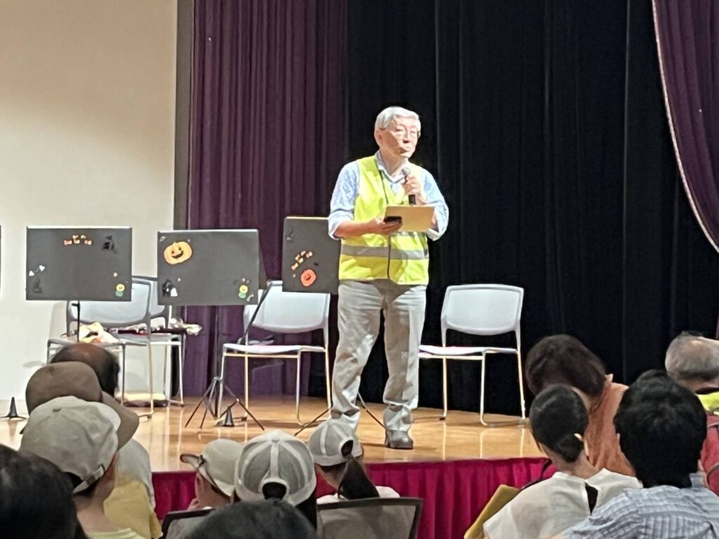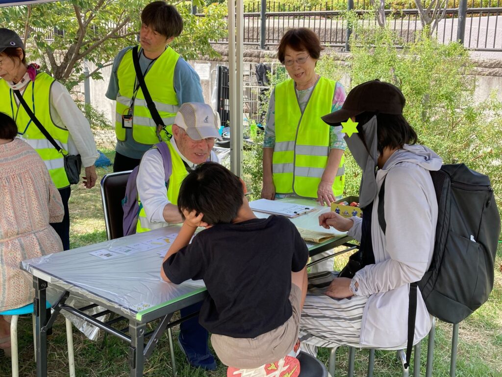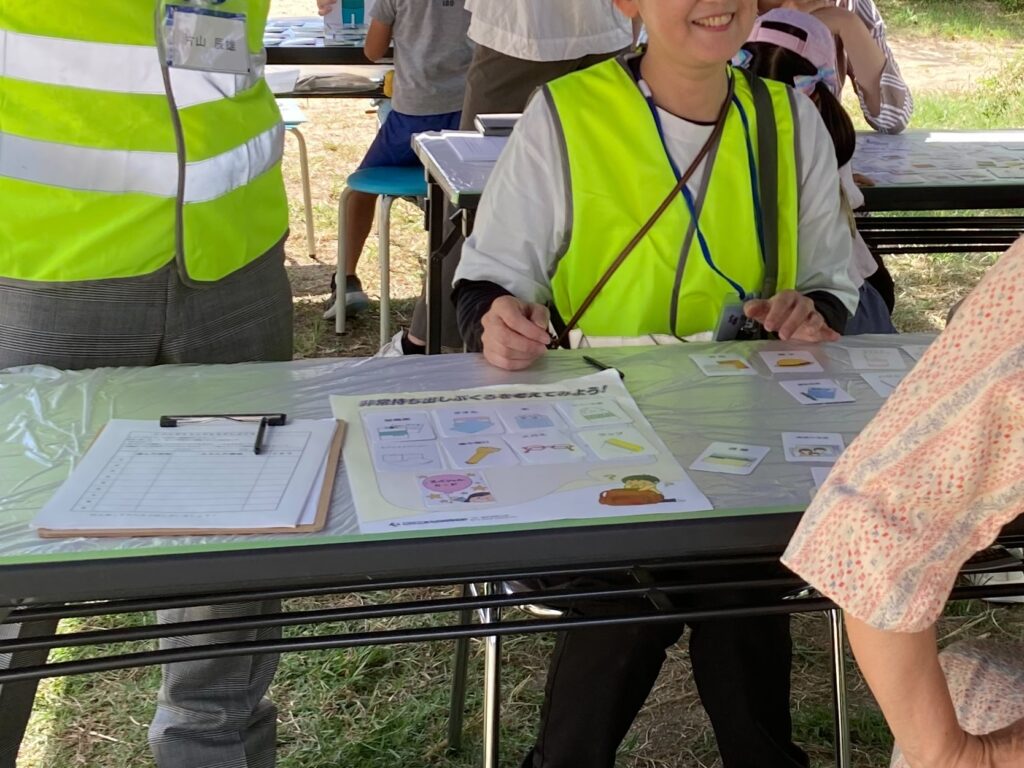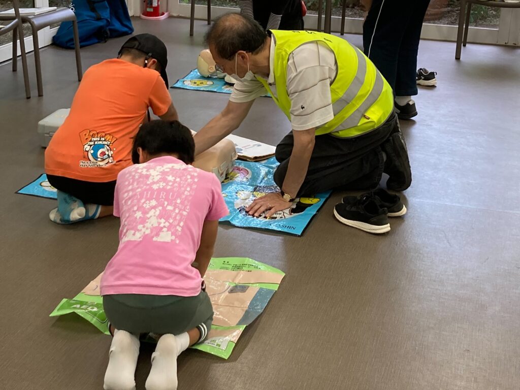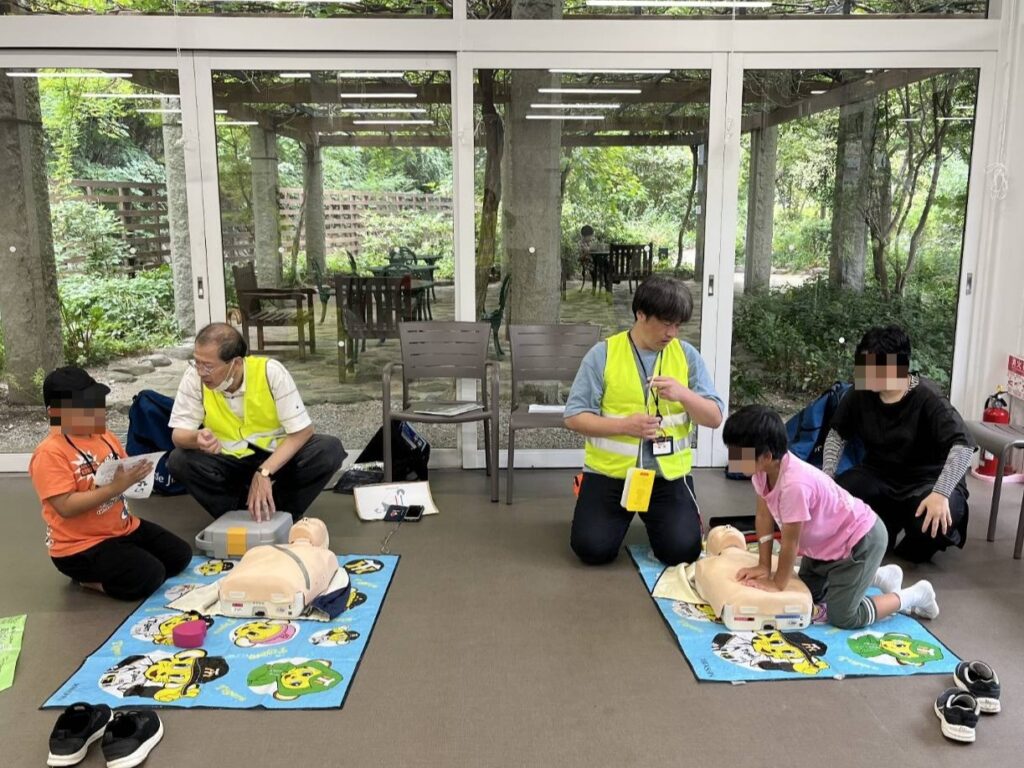 当会は、公園体験コーナーにて、防災持ち出しゲーム、心肺蘇生・AED体験、防災に役立つロープワークを担当しました。また、避難訓練コンサート(演奏:Takarazuka Cla'tz)では、避難後の講評をさせていただきました。