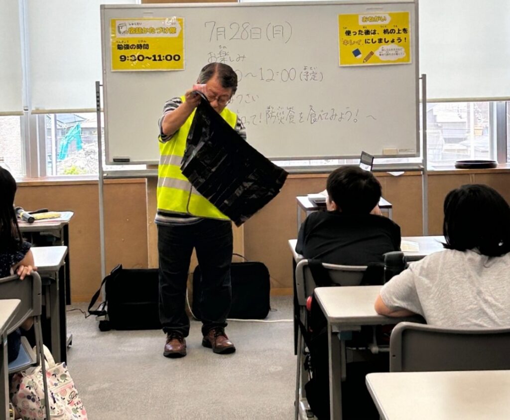 活動報告:まなぼうさい~学んで!知って!防災食を食べよう~ 2025年7月28日 最終更新日時 : 2025年10月22日 tbl2024 日時:2025年7月28日場所:フレミラ宝塚内容:小学生向けに、防災に関する学びのプログラムを実施。「防災手帳」を全員。災害時のTKB48(トイレ、キッチン、ベッド)について説明。